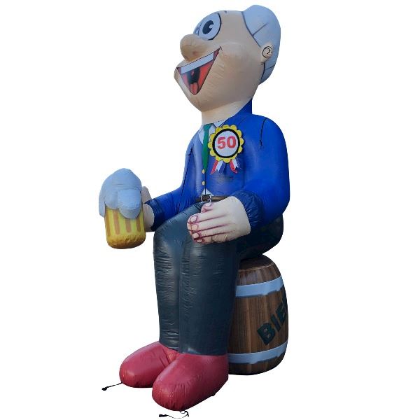 Wordt er iemand in de familie, de kennissenkring of op het werk of de sportclub van je klant 50 jaar, en is diegene niet vies van een biertje of wijntje (of werkt hij of zij bijvoorbeeld in de horeca), dan heb jij met deze Abraham en Sarah op een bier- of wijnvat een passende feestpop in de verhuur! Dit liefst 4 meter grote tweetal zal zonder twijfel zorgen voor een extra feestelijke stemming bij de jarige en hilariteit bij feestgangers en ook passanten zullen vast met een grote glimlach verderlopen, -rijden of op een andere manier -reizen.