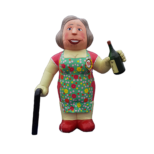 Vind jij de jarige Sarah al een oude dame? En wil je haar even extra plagen door haar te verrassen met een gigantische grote opblaasbare vrouw in haar tuin? Eentje die een stok nodig heeft om te blijven staan? Want dat hoort toch wel een beetje bij de leeftijd van een jarige Sarah…